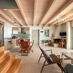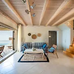 Willa w Kalamítsi oferuje patio i balkon oraz telewizję satelitarną. We wnętrzu znajdują się sofa, a także kamienny kominek. W łazience znajdują się prysznic, suszarka do włosów i ręczniki kąpielowe.